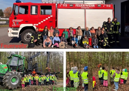 Für große Begeisterung sorgte auch der Besuch bei der nahegelegenen Freiwilligen Feuerwehr in Nistertal. Neben einer Fahrt im Feuerwehrauto - natürlich mit eingeschalteter Sirene - lernten die Kinder die Ausrüstung und Aufgaben der Feuerwehr kennen. Besonders wichtig war dabei die Botschaft: Im Notfall darf man sich nicht verstecken, sondern muss sich bemerkbar machen.